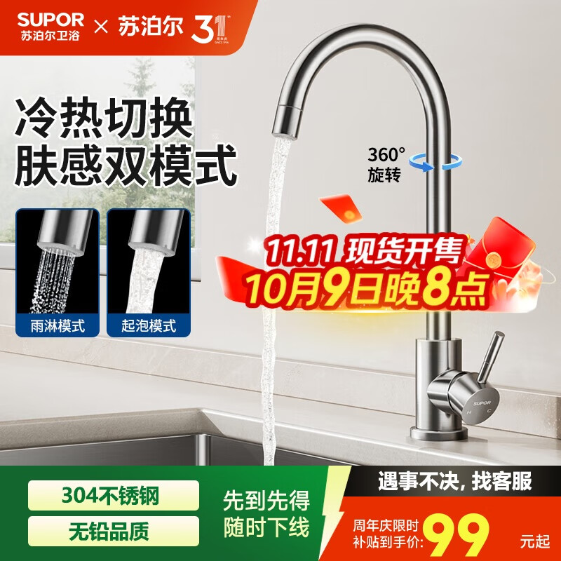 苏泊尔(SUPOR)水龙头冷热厨房304不锈钢360度可旋转水槽洗菜盆龙头