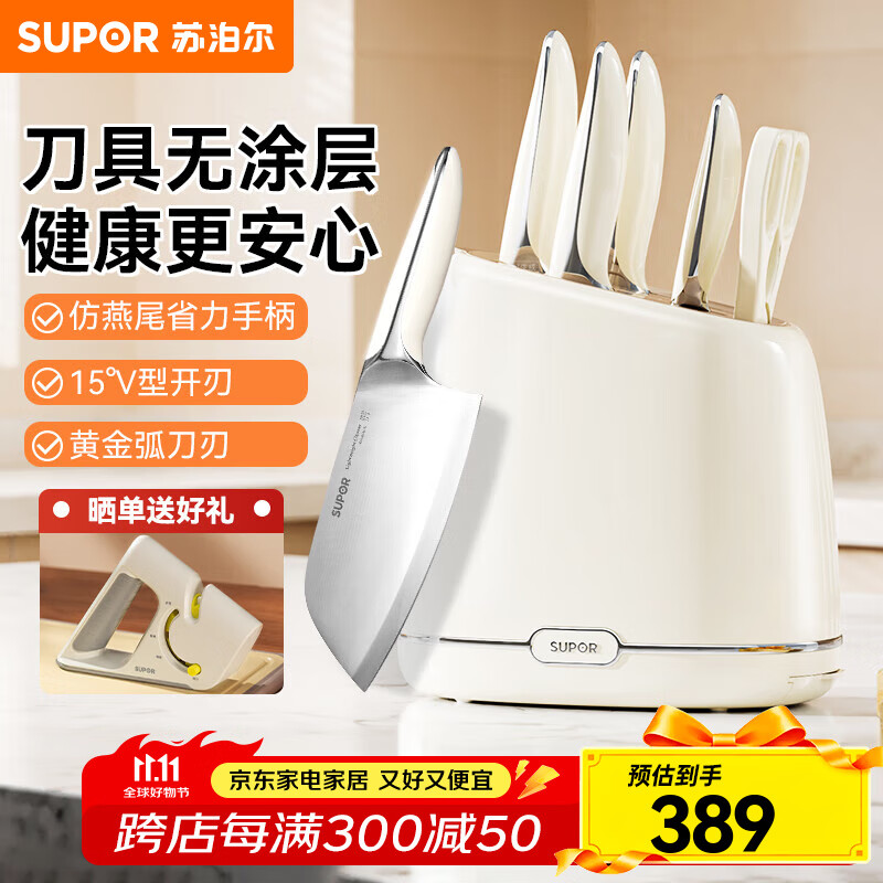 苏泊尔(SUPOR)刀具套装厨房不锈钢切菜刀刀身无涂层小厨刀水果刀多用刀斩切刀 锋润刀具套装【六件套】