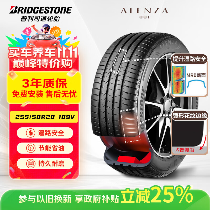 普利司通(Bridgestone)静音绵汽车轮胎255/50R20 109V ALENZA 001傲然者 配套理想L6