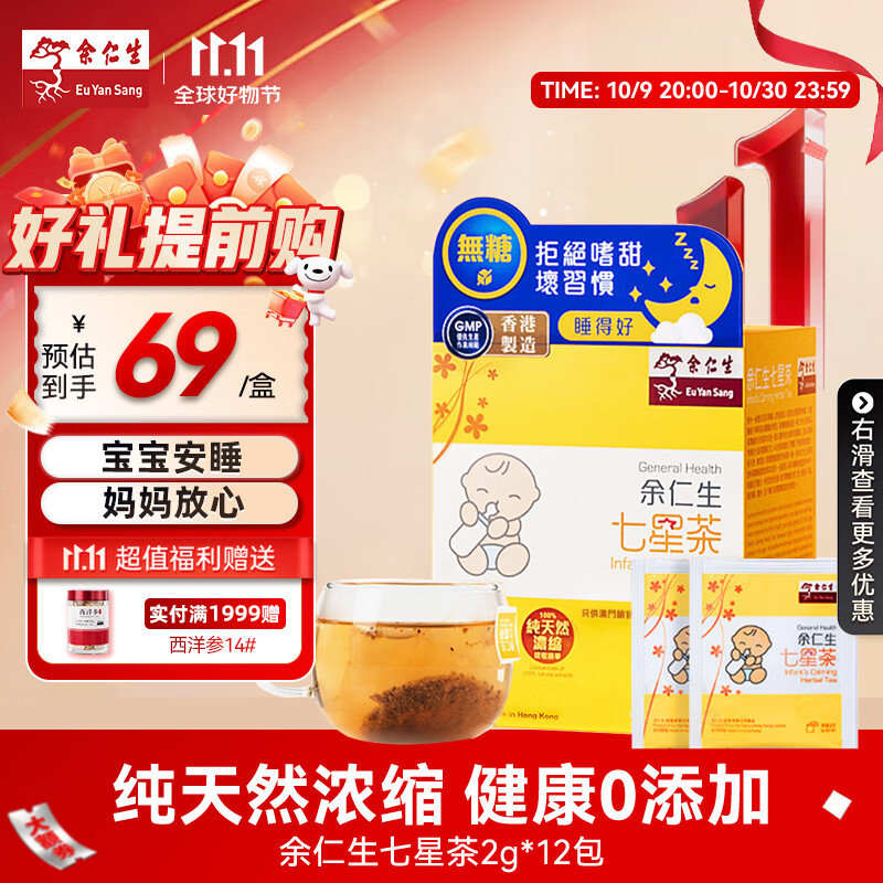 余仁生七星茶2g*12包无糖小儿助眠儿童宝宝开胃助消化清火冲剂包税直邮