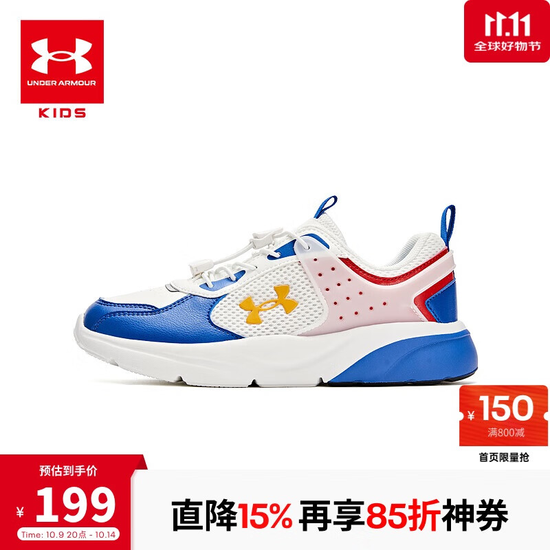 安德玛(Under Armour)男女童跑步鞋休闲运动鞋秋冬耐磨闪穿跑鞋2441303 白/蓝 37.5码