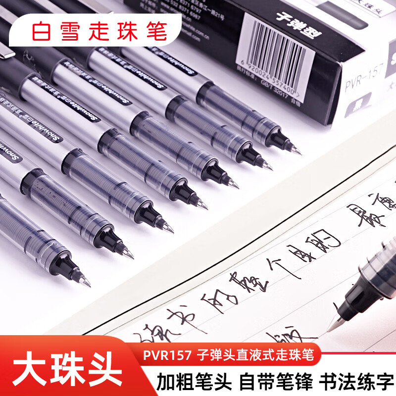 白雪(snowhite)PVR-157直液式走珠笔子弹型加粗中性笔学生用签字笔速写专用黑色0.7mm12支/盒