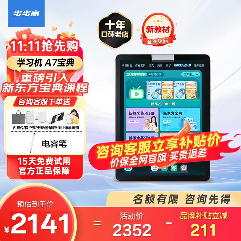 步步高学习机A7宝典版/A8 作业批改 AI智能学习平板 学生平板电脑 小学到高中课程同步学练机 A7宝典(8+3)+256G【限时补贴】 咨询客服享优惠