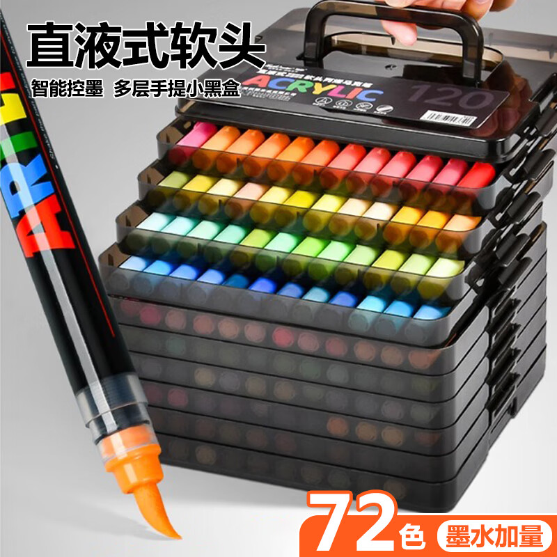 Touchcolor72色直液式软头丙烯马克笔小黑盒小学生美术专用绘画画笔不透色水彩笔六一儿童节礼物送男女孩