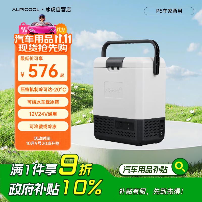 冰虎(Alpicool)车载冰箱压缩机P8车家两用12V24V冷冻冷藏汽车户外美妆手提箱