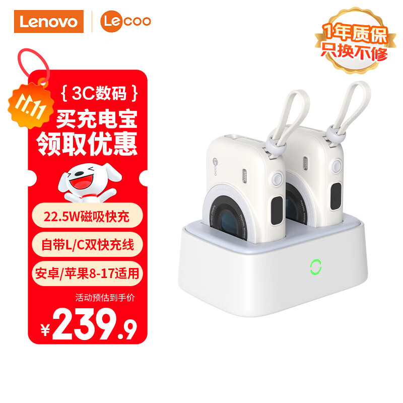 来酷磁吸充电宝移动电源苹果安卓自带线大容量20W无线快充【3C认证】可上飞机 罗永浩推荐