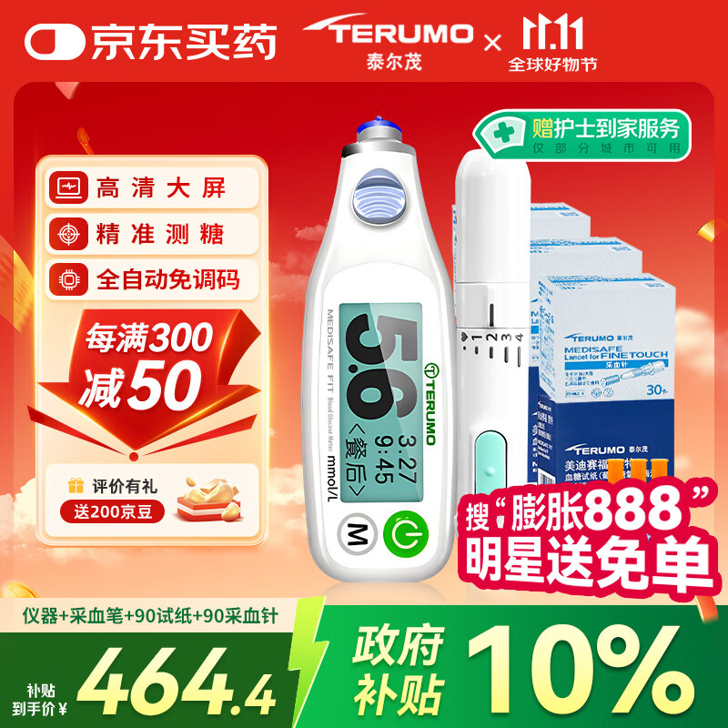 泰尔茂(TERUMO)血糖仪家用测试仪糖尿病检测仪日本进口美迪赛福含采血笔+90试纸