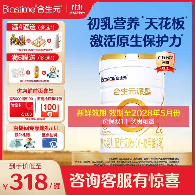合生元(BIOSTIME)派星2段婴幼儿配方奶粉6-12个月 【易消化吸收】800g*1罐