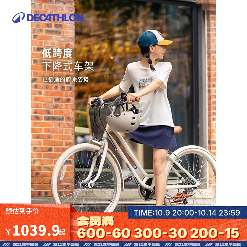 迪卡侬Elops500儿童自行车复古代步变速奶油白24寸青少年单车 4642631