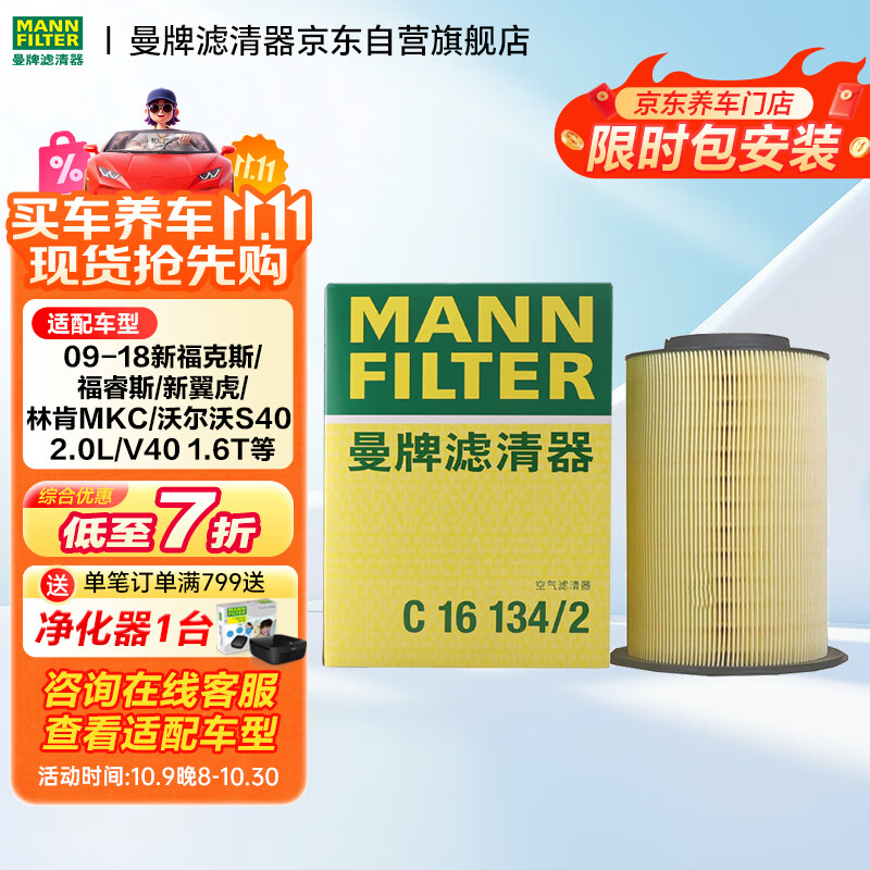 曼牌(MANNFILTER)空气滤清器空滤空气滤芯C16134/2福克斯沃尔沃S40/C30/V40林肯MKC