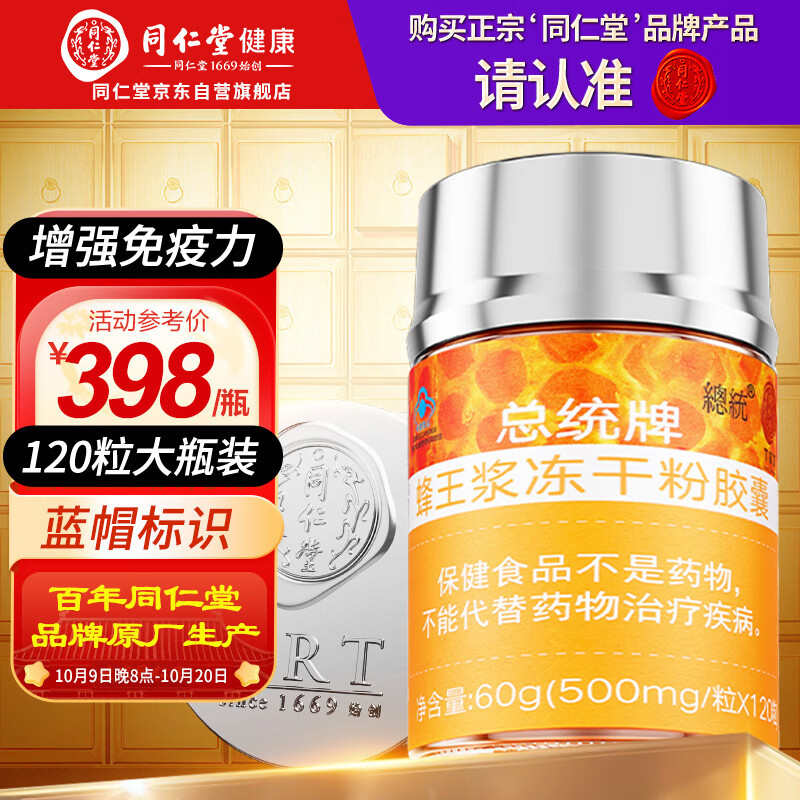 同仁堂蜂王浆冻干粉胶囊中老年成人增强免疫力保健食品120粒