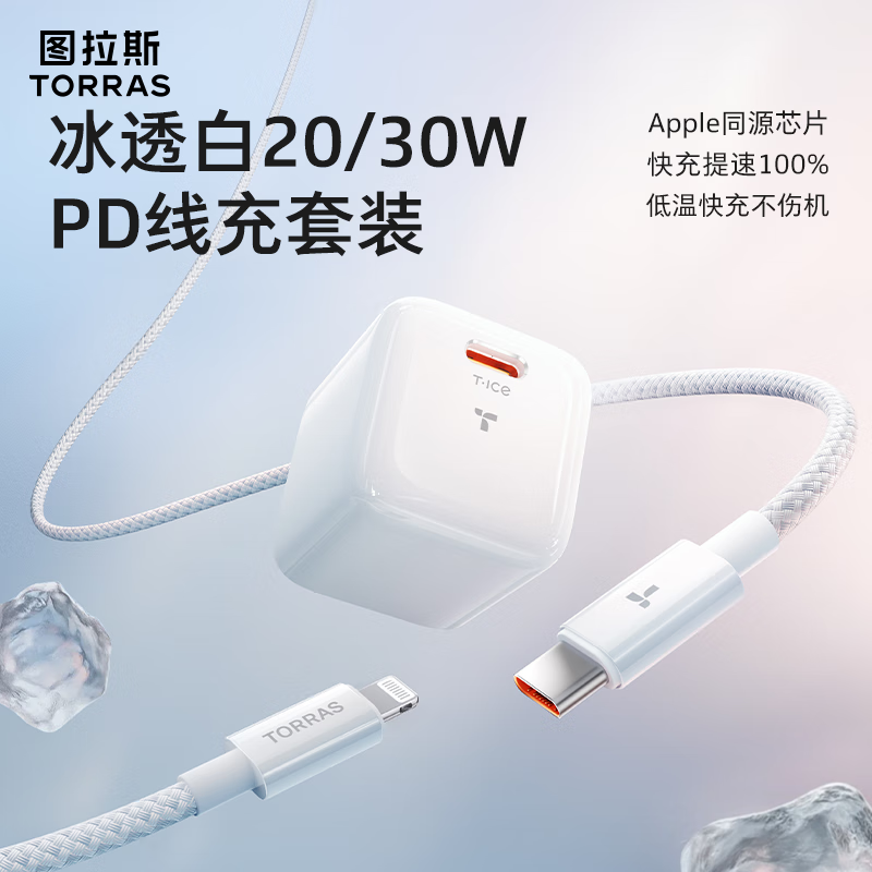 图拉斯小冰块Lite【认准自营正品】苹果充电器20W快充PD氮化镓iPhone14 13 12充电头适配原装PD快充线