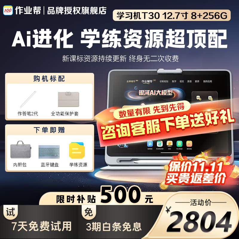 作业帮学习机 T50/P50/T30/T35/X58 2025新版学生专用平板电脑学习一体机 小学到高中课程同步全科BZ31 T30学习机经典爆款