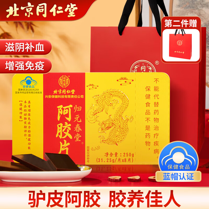 同仁堂(TRT)阿胶块纯驴皮熬制不含黄明胶七夕节日礼物女性滋补礼物250g/盒