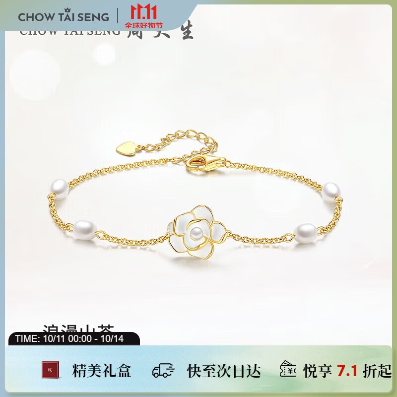 周大生珍珠山茶花手链女赫本风轻奢高级感小众精致生日礼物送女友