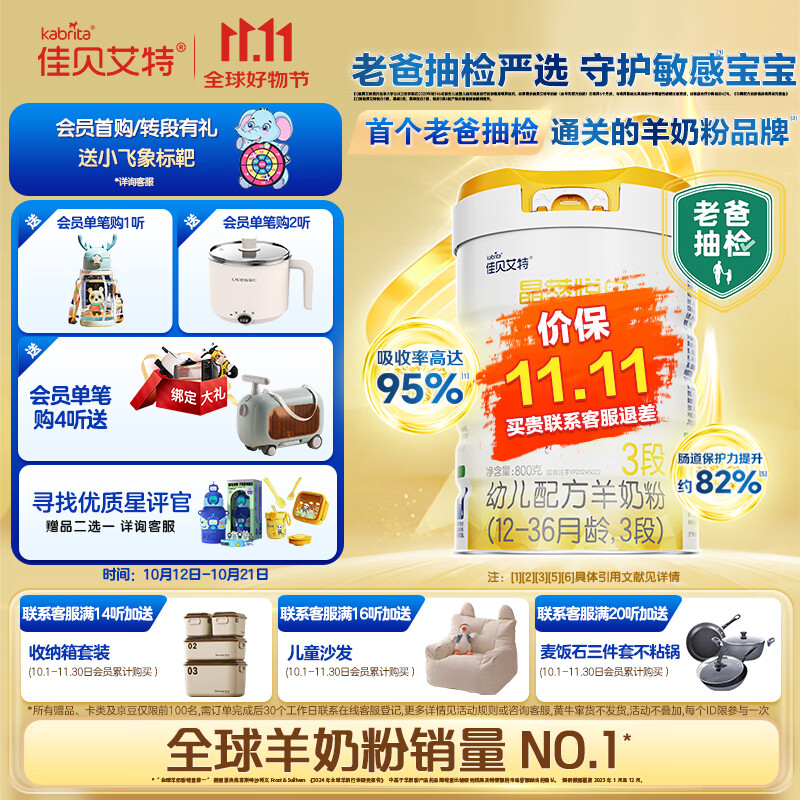 佳贝艾特(Kabrita)晶萃悦白婴幼儿配方羊奶粉 3段(1-3岁)800克 双重乳铁蛋白