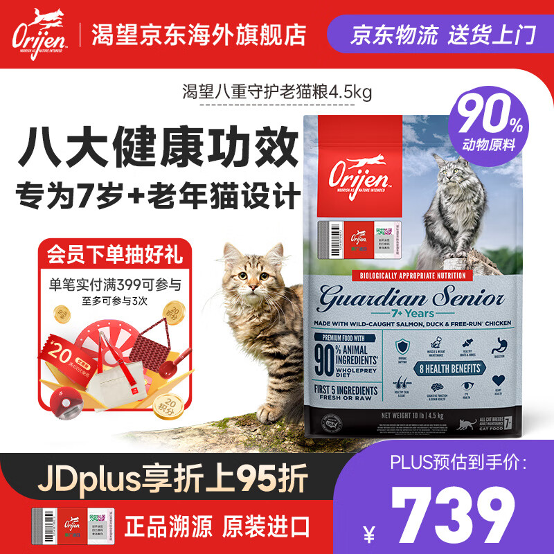 Orijen渴望猫粮【美版】高蛋白低脂八重守护老猫猫干粮4.5kg-效期26/12