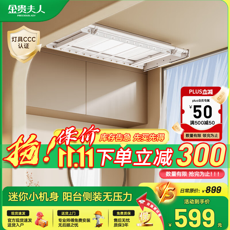 金贵夫人电动晾衣架升降阳台晾衣杆自动遥控晒衣架智能晾衣机侧装A3白照明