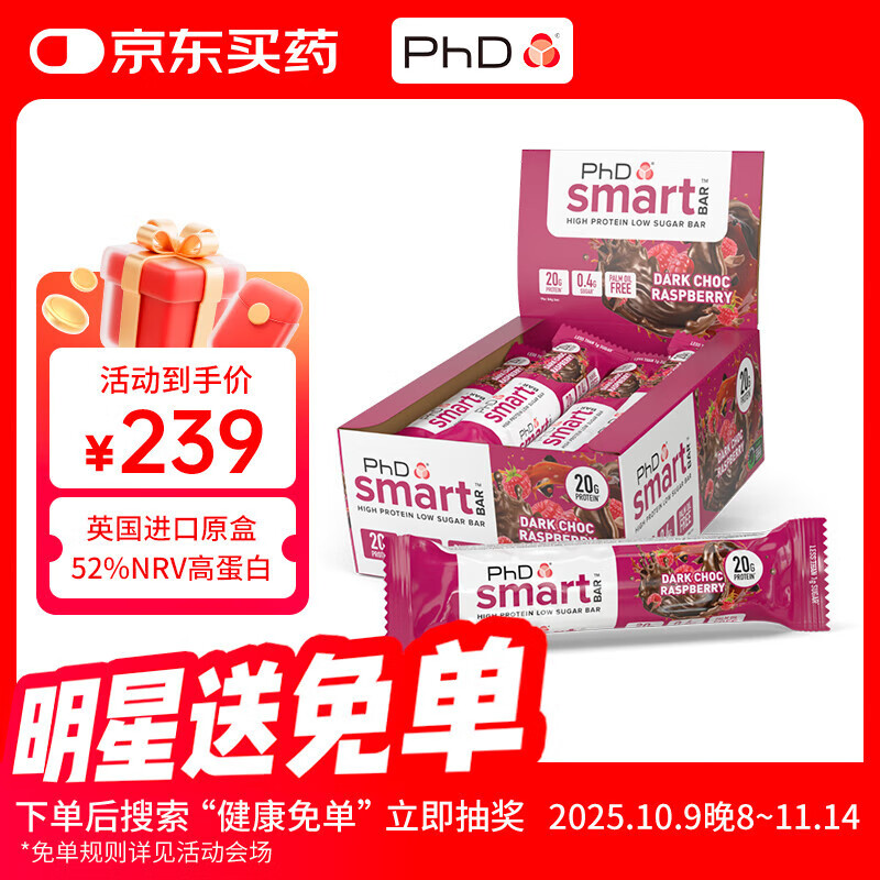 PhD智选蛋白棒12支黑巧克力树莓能量代餐高蛋白健身运动饱腹食品
