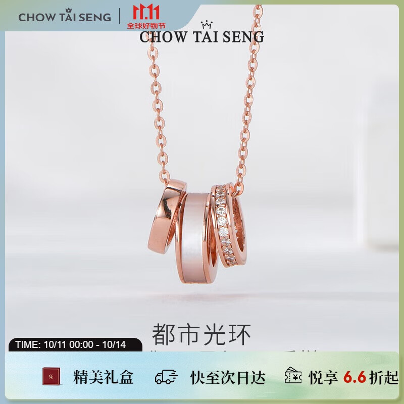 周大生三环小蛮腰项链纯银女生轻奢小众锁骨链高级感首饰生日礼物送女友