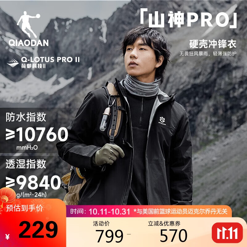 乔丹冲锋衣男山神PRO春季外套户外连帽防水防单层风衣男夹克