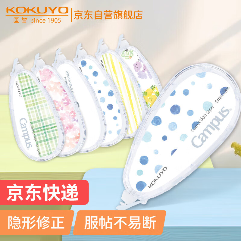 国誉(KOKUYO)学生Campus原纸色替芯式修正带修改带涂改带 5mm*8m 本体 水绘风蓝WSG-TWT3508-2