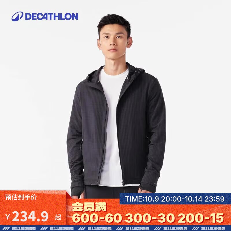 迪卡侬外套男春秋保暖防风加绒连帽卫衣跑步健身训练开衫夹克 4302196
