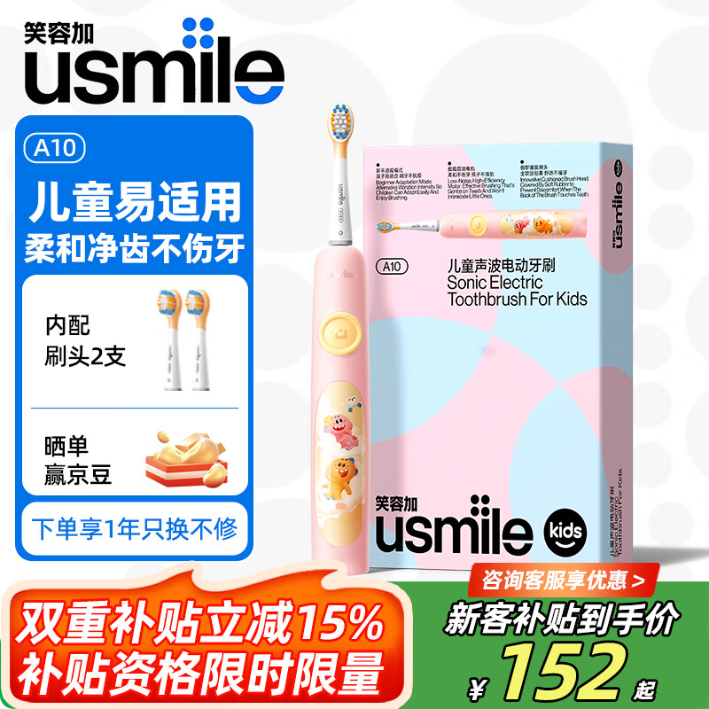 usmile笑容加儿童电动牙刷A10声波震动180天续航3-6-12岁学生礼物宝宝生日礼物儿童礼物520开学中秋礼物 【柔软刷毛】A10灵柔粉