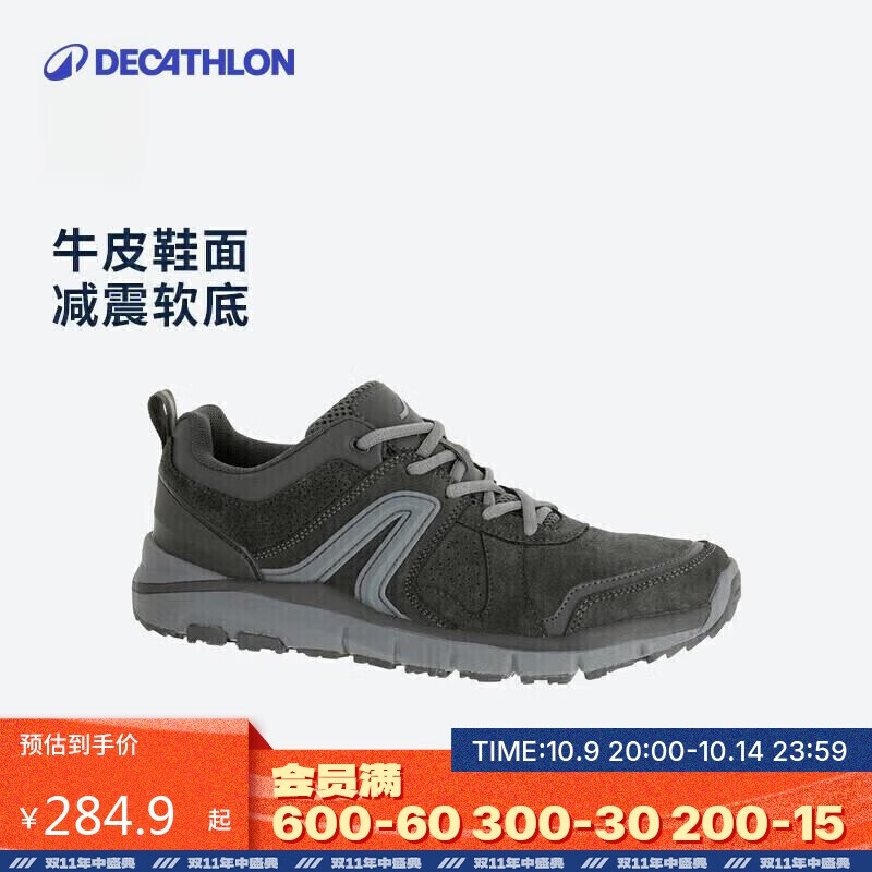 迪卡侬男秋冬意大利进口牛皮舒适缓震防滑户外休闲鞋深灰色43 2249602