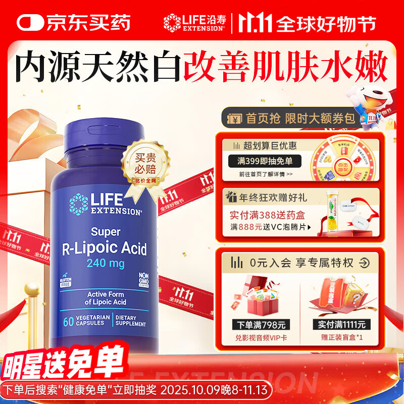 Life Extension沿寿阿尔法R-硫辛酸精华胶囊美国进口保健品