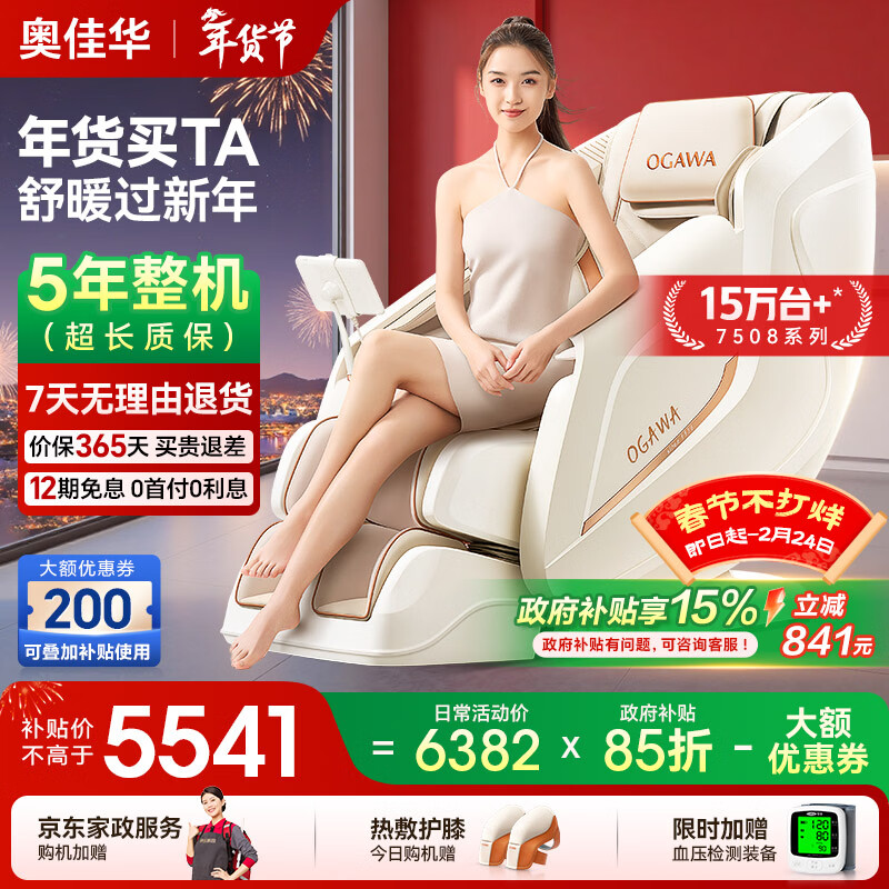 奥佳华按摩椅十大品牌家用太空舱肩颈腰背全身按摩政府补贴电动摇摇椅送老人生日礼物7508pro+流光雅杏