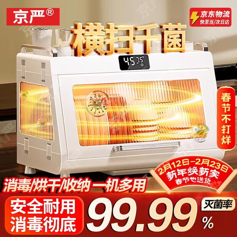 京严碗筷柜家用小型紫外线消毒碗柜厨房餐具高温烘干一体机沥水置物架 消毒款【负离子净化+紫光消毒+高温烘干】 55L大容量|德系精工|365天只换不修