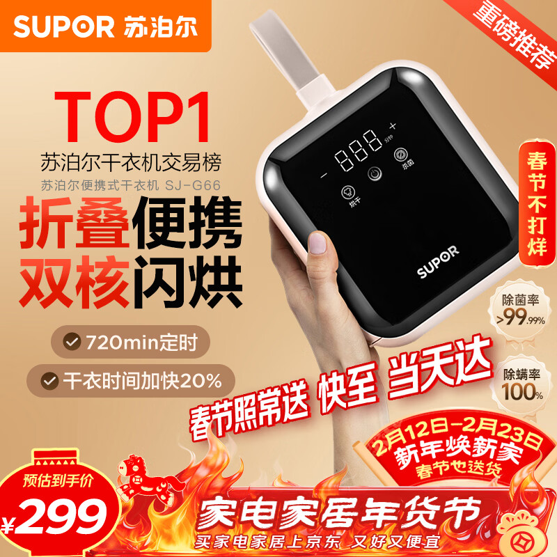 苏泊尔(SUPOR)干衣机便携式干衣机家用烘干机折叠小型旅行便携烘衣神器衣物护理机迷你烘干机SJ-G66京东定制