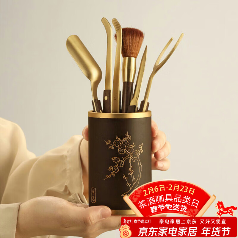 不拙茶道六君子电木套装茶具配件茶艺摆件钢制茶刀茶夹暗香茶具六君子