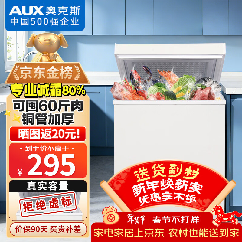 奥克斯(AUX)小冰柜家用小型冷藏柜冷冻柜两用冰柜小型租房家用小冰箱小型冷柜 铜管/128升级/可囤60斤肉/减霜80% 29L