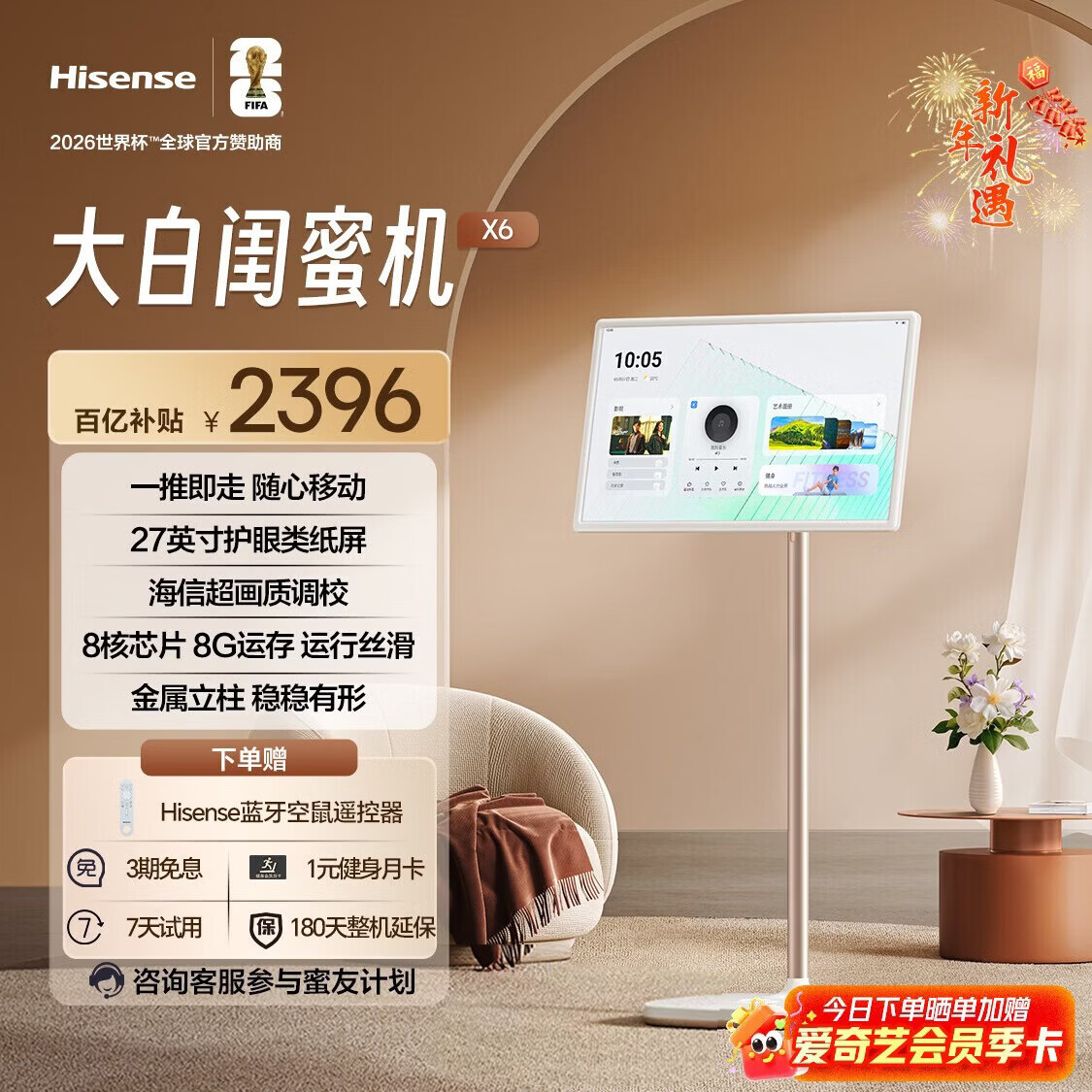 海信大白闺蜜机X6 长续航 护眼类纸屏 27英寸8核芯片大平板 娱乐观影 可移动电视 女生礼物