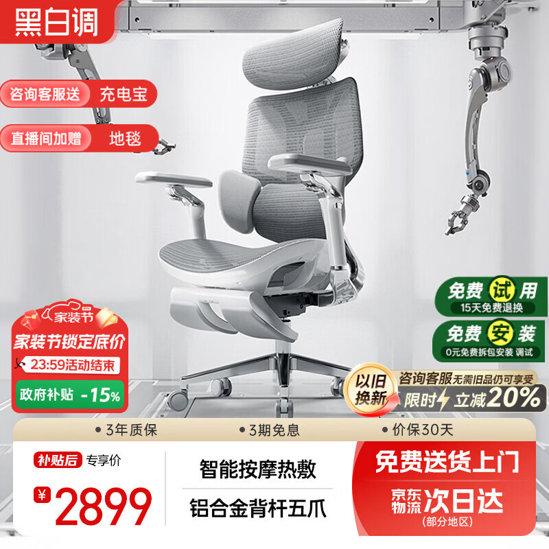 黑白调E3Ultra人体工学椅电脑椅子办公椅人工力学座椅智能按摩加热腰托