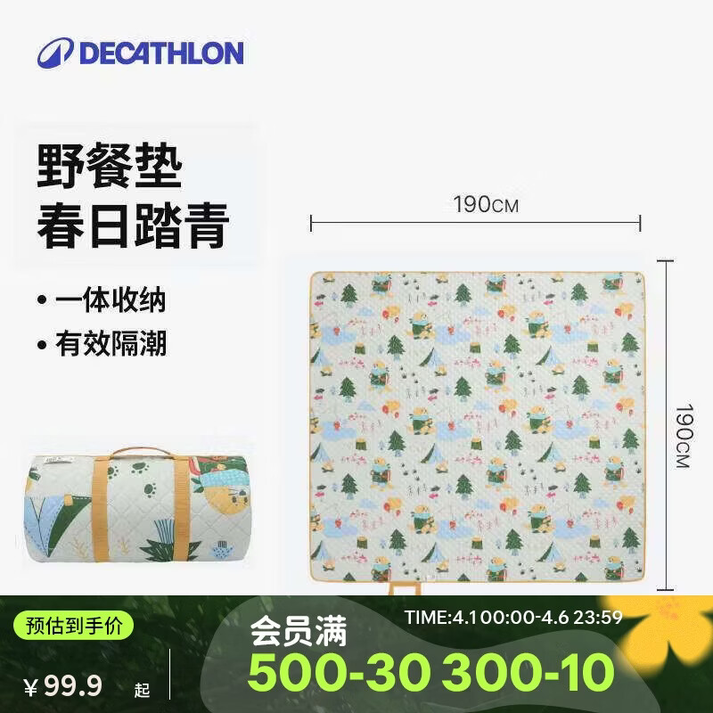 迪卡侬野餐垫加厚便携户外垫子露营帐篷沙滩垫防沙防潮垫-5736188