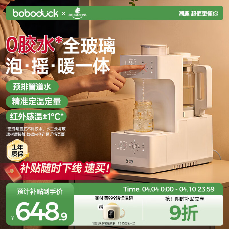 boboduck大嘴鸭全玻璃恒温壶 定量泡奶机三合一泡奶摇奶一体机多功能喂养台 6296