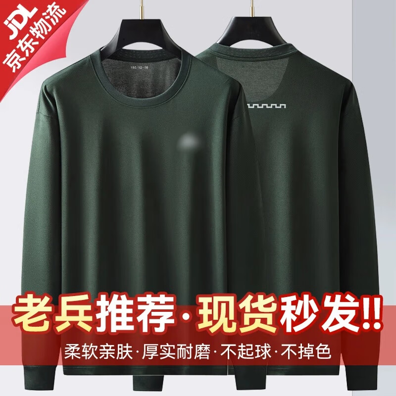 际华 3565灰绿圆领衫长袖体能服春秋速干夜间训练反光海魂长袖圆领衫 橄榄绿长袖圆领衫 均码 175/92-96