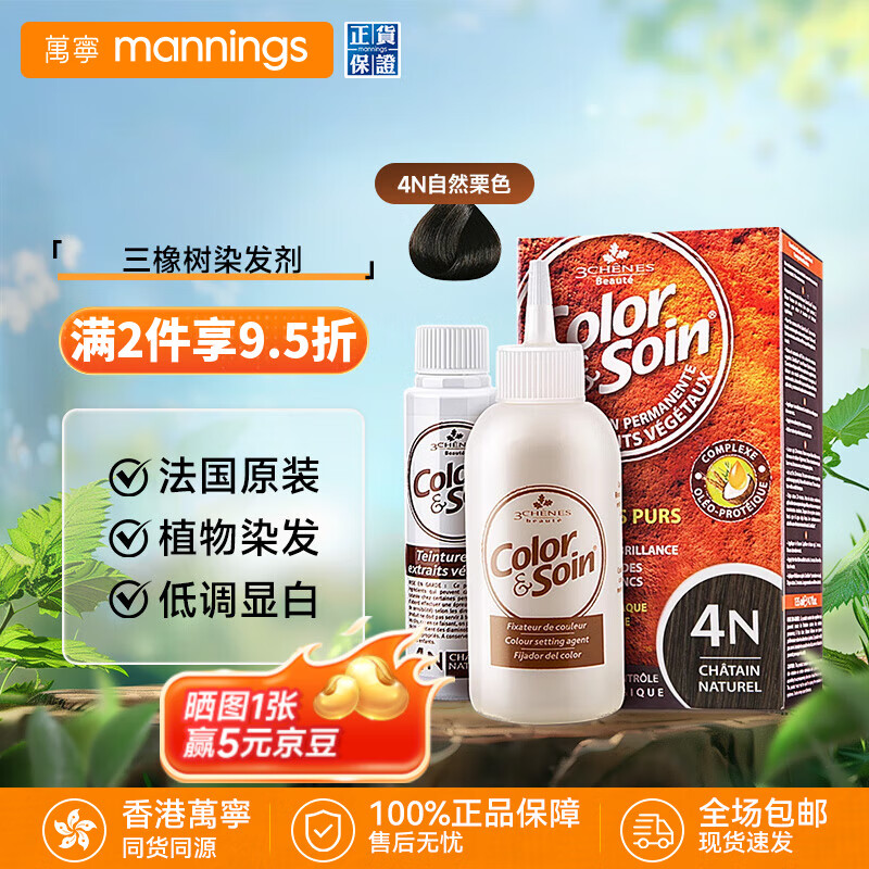 三橡树染发剂欧洲进口盖白发染发膏染头发无刺激不伤发 4N自然栗色【黄皮显白】