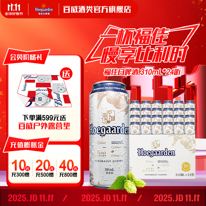 福佳精酿白啤酒比利时风味百威啤酒高端小麦啤酒 310mL 24罐 整箱装