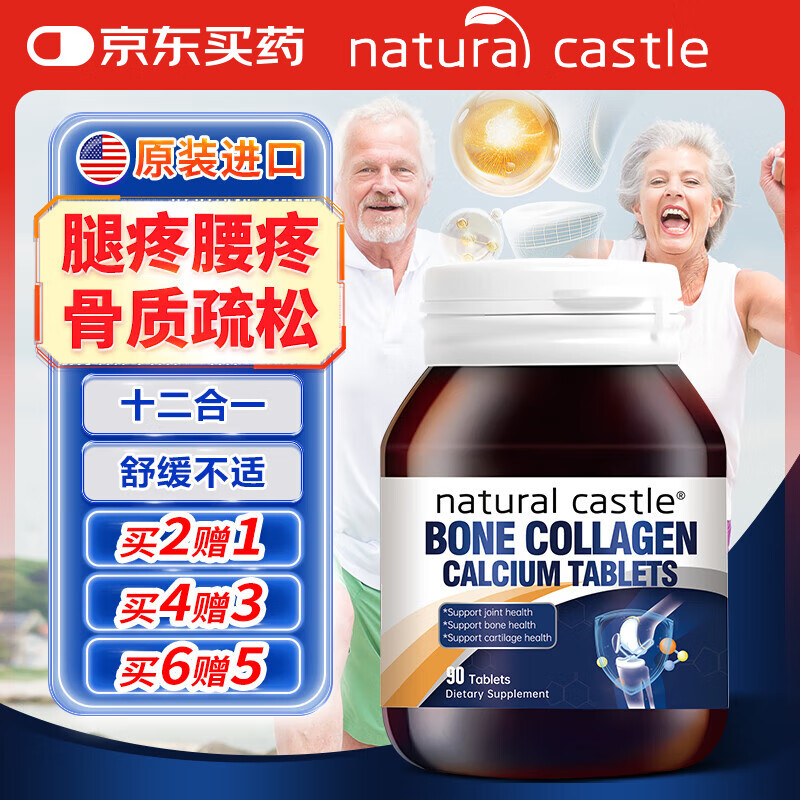 Natural Castle进口骨胶原钙片 成人中老年补钙腿疼腰疼骨质疏松腿抽筋