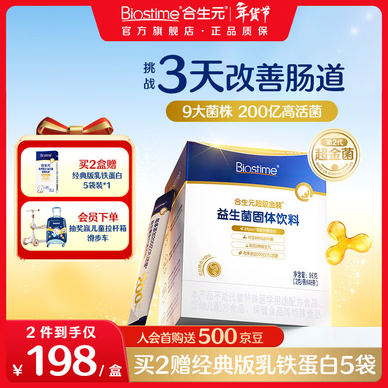 合生元(BIOSTIME)第二代超金菌益生菌婴儿双歧杆菌呵护改善便便 【7.6/袋】 30袋*1盒 【升级款尝鲜】