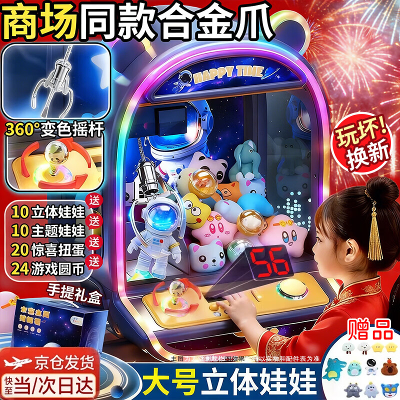 活石儿童抓娃娃机大型家用6-12岁8-12岁3-6岁玩具小女孩生日礼物男孩 满配40cm礼盒【超大号恐龙*2+宇航+雪怪】20娃20蛋24币 夹娃娃机超大号1-3岁2岁5岁女孩子2026火的最玩具14岁