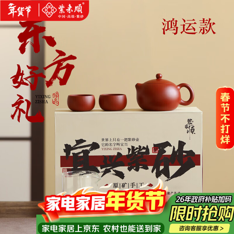 紫来顺宜兴大红袍西施壶套组纯手工高档紫砂壶功夫茶具套装送长辈礼物 【鸿运款】西施一壶四杯套组
