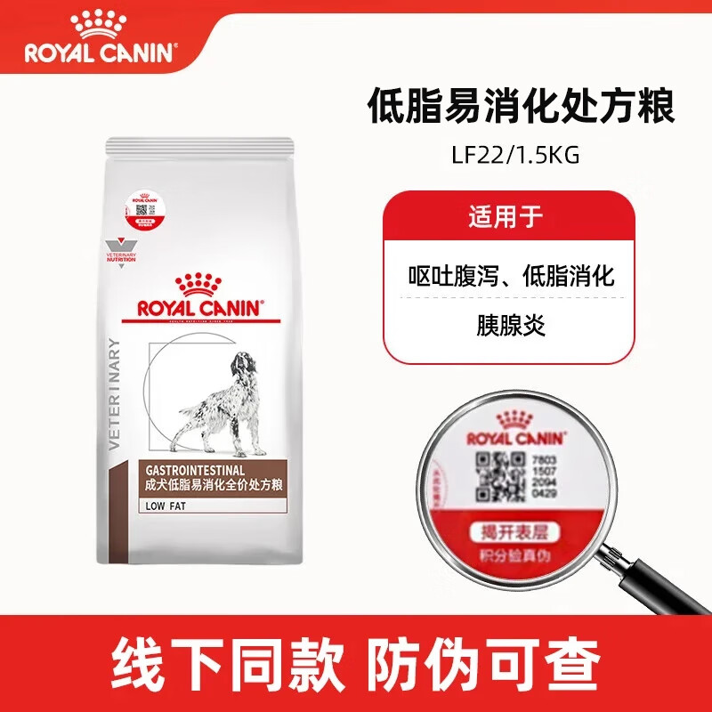 皇家LF22低脂易消化处方狗粮 腹泻急性慢性胰腺炎纤消维化支持胰腺 LF22低脂易消化处方狗粮 1.5kg*1袋