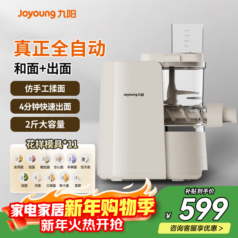 九阳面条机真正全自动 家庭用 和面压面 饺子皮一体机 适用1-5人快速出面 11种花式模头M6-M1 【2斤大容量】可拆洗