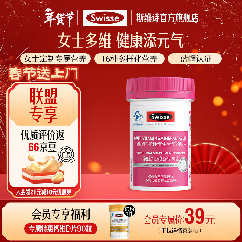 Swisse斯维诗 多种维生素矿物质片 蓝帽认证「联盟专享」 【女士复合维生素】1.33g/片*90片*1瓶
