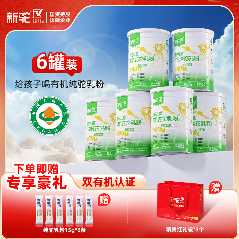 新驼儿童有机纯骆驼奶粉新疆驼乳粉学生青少年高钙奶粉营养品送礼 儿童款500g(实惠装)*6罐